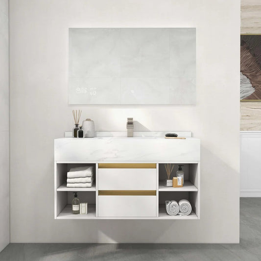 1000mm Floating White Bathroom Vanity with Sintered Stone Vessel Sink