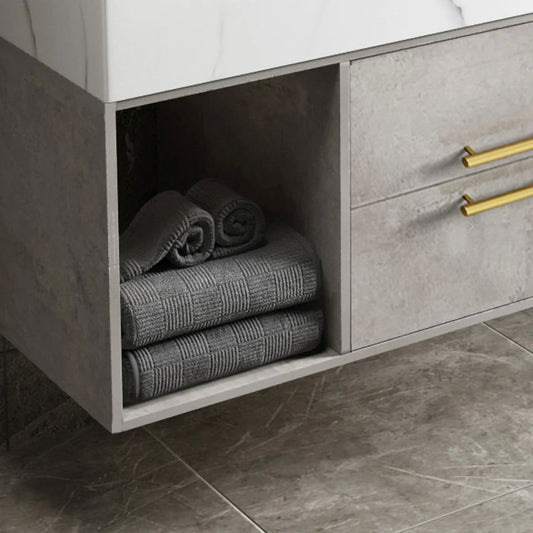 1000mm Grey Floating Bathroom Vanity with Stone Top Wall Mounted Cabinet