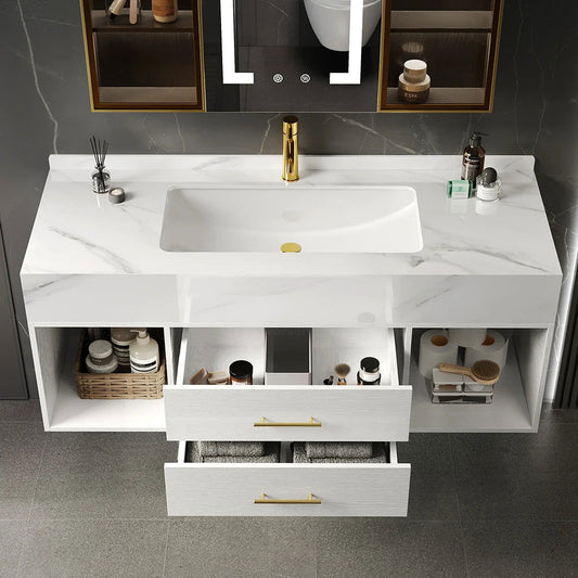 1000mm Floating Bathroom Vanity Set with Ceramic Basin 2 Drawers & Open Shelves in White