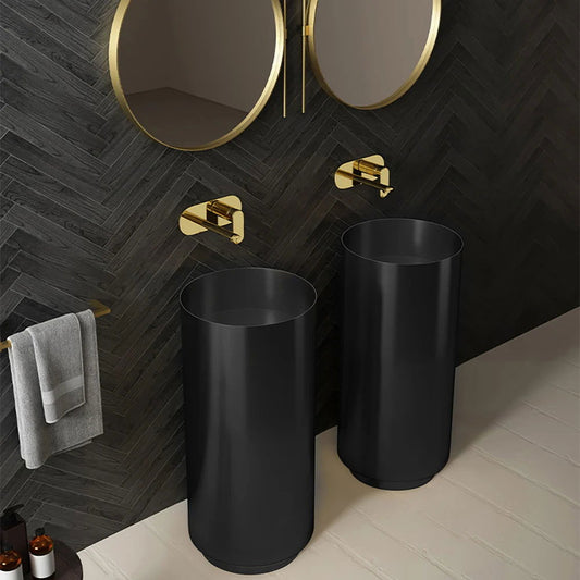 Black Modern Round Stainless Steel Basin Pedestal Basin Freestanding