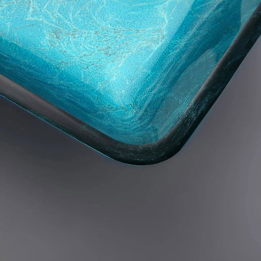 Modern Greenish-Blue Rectangular Countertop Tempered Glass Bathroom Wash Basin
