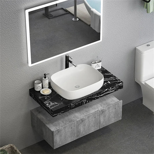 900mm Floating Bathroom Vanity with Sintered Stone Vessel Sink with 2 Drawers