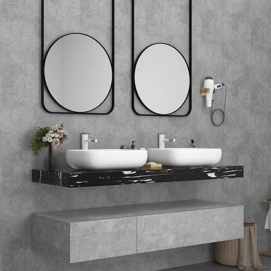 800mm Black & White Floating Bathroom Vanity Faux Marble Top Ceramic Countertop Basin