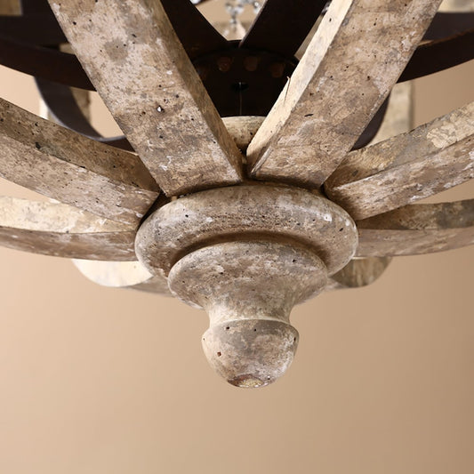 Retro Rustic Weathered Wooden Globe Metal Orb Crystal 3-Light Chandelier Small