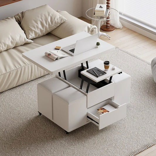 Modern White Lift Top Coffee Table 4 in 1 with Storage Ottoman Foldable and Casters