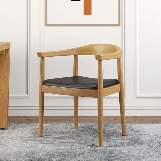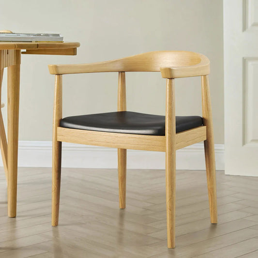 Modern 4-Piece Curved Back Dining Chair Upholstered Leather Natural Wooden Armchair