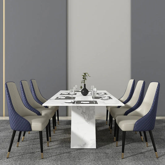 Diamic Modern Blue Upholstered Dining Chair Faux Leather High Back Chair (Set of 2)
