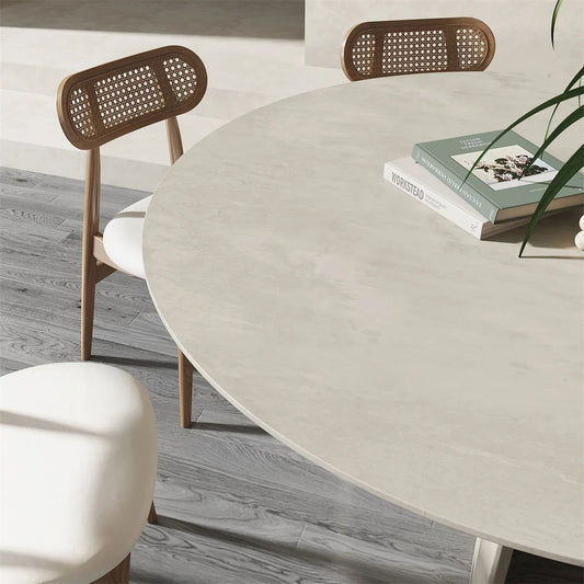 1350mm Modern Round Dining Table & 6 Modern Upholstered Light Grey Velvet Dining Chairs