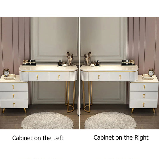 Modern White Velvet Makeup Vanity Table Expandable Dressing Table with Cabinet