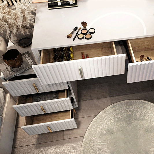Pursorr Modern White Oval Extendable Makeup Vanity with 5-Drawer Side Cabinet Included