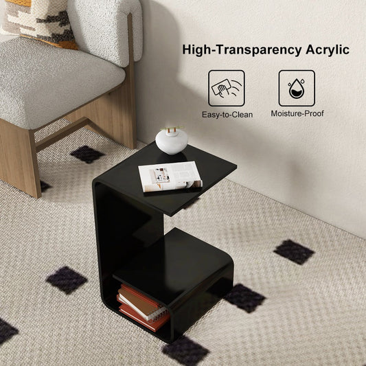 Modern Black Acrylic End Table with Storage C-Shaped Side Table