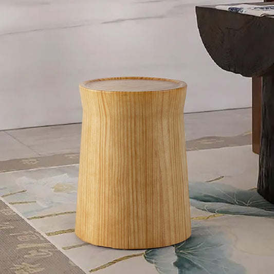 Small Cottage Round Wood Side Table Tray Top in Beige End Table