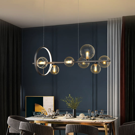Modern Minimalist 7-Light Glass Globe Shade Kitchen Island Light in Black