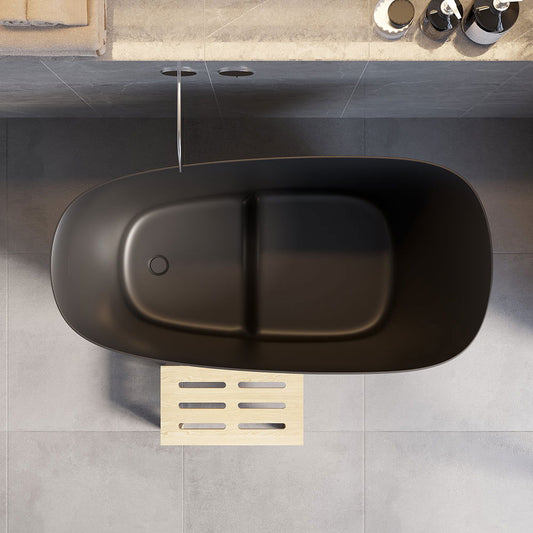 1000mm Modern Deep Oval Freestanding Matte Black Stone Resin Japanese Soaking Bath