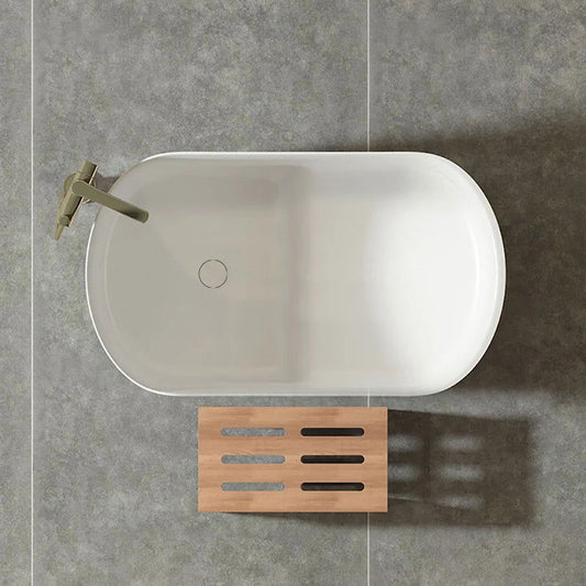 1000mm Modern Deep Oval Freestanding Matte White Stone Resin Japanese Soaking Bath