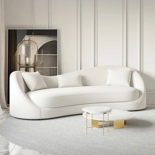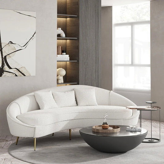 2100mm Modern White Boucle Curved Sofa 3 Seaters Toss Pillow Included