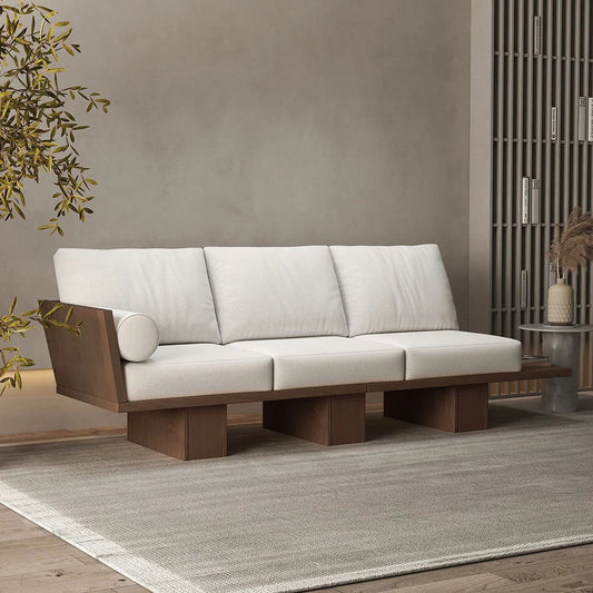 2460mm Walnut Japandi Solid Wood Living Room Sofa 3-Seater Cotton & Linen Upholstery